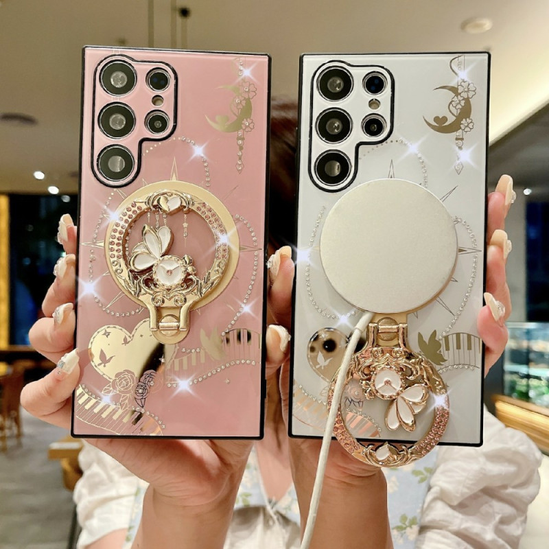 Protégez votre Samsung Galaxy S26 Ultra avec élégance grâce à cette coque magnétique alliant style et fonctionnalité. Ornée de strass délicats et dotée d'un support anneau rotatif à 360°, elle offre une prise confortable et un visionnage mains libres optimal.