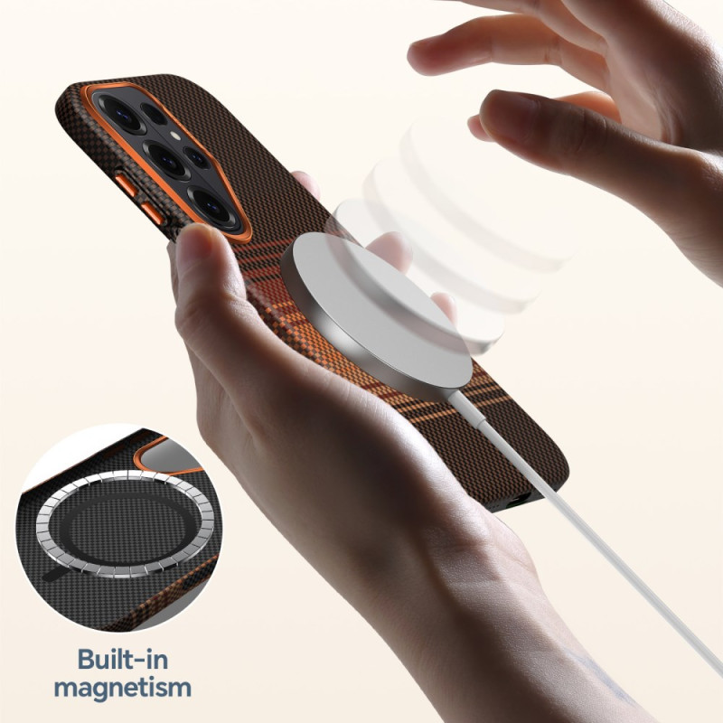 Protégez votre Samsung Galaxy S26 Ultra avec cette coque magnétique premium. Design tissé élégant et moderne, compatible avec les accessoires magnétiques. Structure hybride renforcée offrant une protection optimale contre les chocs et les rayures.