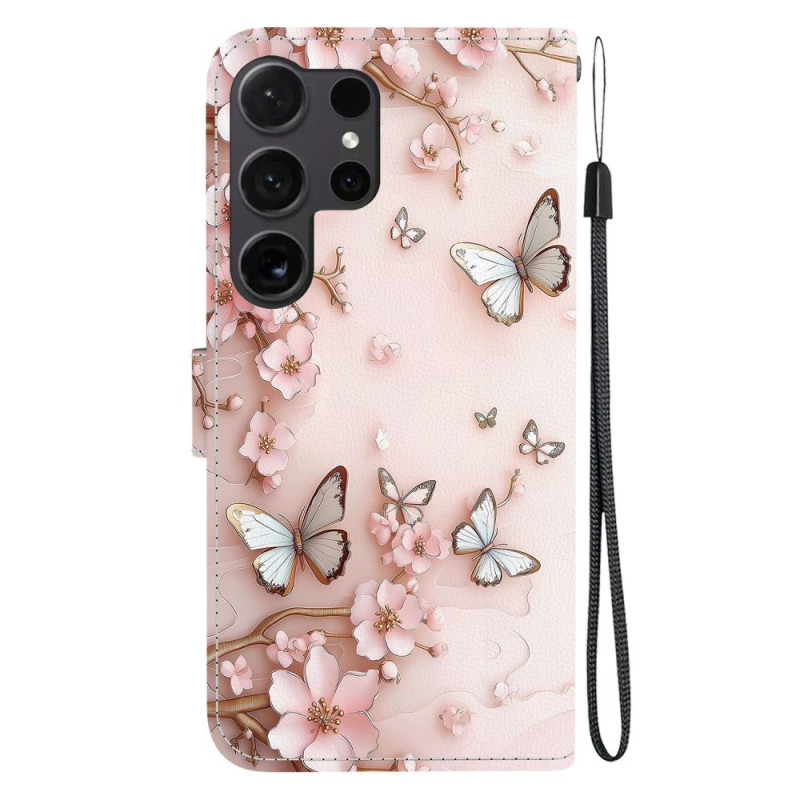 Protégez votre Samsung Galaxy S26 Ultra avec élégance grâce à cet étui portefeuille au motif papillon rose. Doté de compartiments pour cartes, d'un support pliable et d'une dragonne pratique, il allie style et fonctionnalité au quotidien.