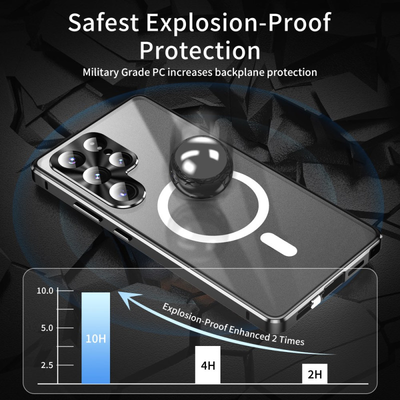 Protection complète à 360° pour votre Samsung Galaxy S26 Ultra. Cette coque magnétique combine verre trempé, PC mat et cadre métallique détachable pour une protection optimale et un style premium. Compatible avec les accessoires magnétiques.