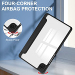Elegant ontwerp met transparante achterkant, geïntegreerde penhouder en ondersteuning voor meerdere hoeken.