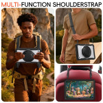 360° draaibaar, een geïntegreerde standaard en een verstelbare schouderriem voor maximale mobiliteit.