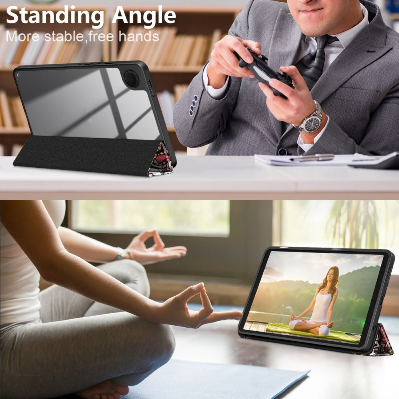 Deze drievoudige hoes biedt een robuuste en veelzijdige ondersteuning voor bekijken en typen.