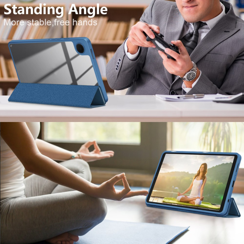 Deze elegante smart case voor de Samsung Galaxy Tab A9 biedt volledige bescherming en gemakkelijke toegang tot alle essentiële poorten en knoppen.