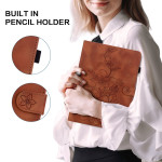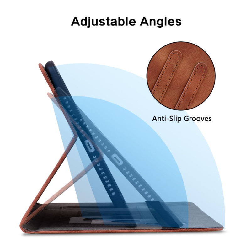 Het chique ontwerp met bedrukt fleur-de-lys motief voegt een vleugje verfijning toe. Geniet van praktische functionaliteit met kaartsleuven, een verstelbare standaard en een pennenhouder.