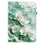 Ontdek onze verfijnde case voor de Samsung Galaxy Tab S11, versierd met een prachtig jade bloemenmotief. Deze hoogwaardige hoes van synthetisch leer combineert stijl en functionaliteit en biedt volledige bescherming met zijn opvouwbare standaard, kaartsleuven en elastische sluiting. Perfect voor gebruikers die waarde hechten aan design en functionaliteit.