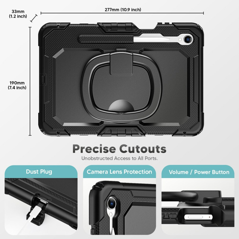 Ontdek onze innovatieve hoes voor de Samsung Galaxy Tab S11. De hoes combineert robuuste bescherming en functionaliteit en biedt maximale bescherming tegen stoten en vallen. De 360-graden roterende houder zorgt voor handsfree kijken in elke oriëntatie.
