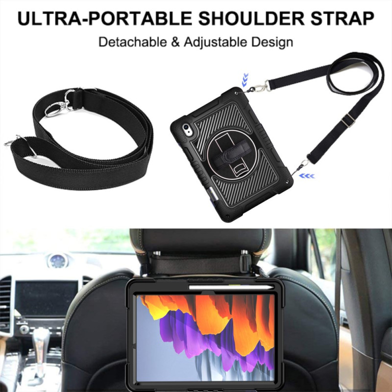 Ontdek onze robuuste en veelzijdige hoes voor de Samsung Galaxy Tab S11. Gemaakt van niet-giftige siliconen en PC en biedt optimale bescherming tegen stoten en vallen. De 360 graden draaibare standaard en verstelbare handband zorgen voor maximaal gebruikscomfort.