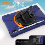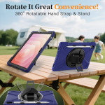 Ontdek onze robuuste hoes voor de Samsung Galaxy Tab S11, ontworpen voor optimale bescherming. Met een stabiele standaard, verstevigde siliconen hoeken en een 360° draaibare band biedt hij een veelzijdige gebruikerservaring. De meerlaagse constructie biedt bescherming tegen stoten, krassen en vallen.