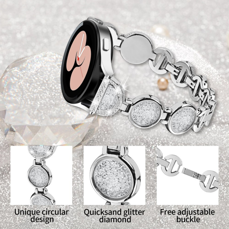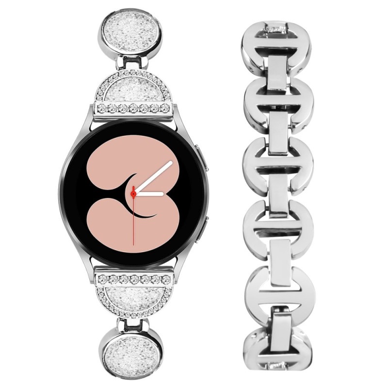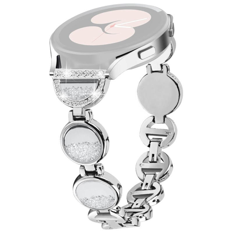 Ontdek onze metalen armband voor Samsung Galaxy Watch FE 40mm. Het unieke ontwerp met cirkelvormig motief en fonkelende strasversiering biedt elegantie en stijl.