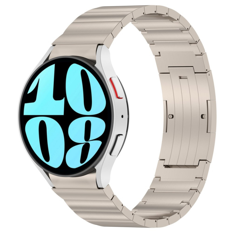 Ontdek ons titanium stalen bandje van hoge kwaliteit voor je Samsung Galaxy Watch. Duurzaam, comfortabel en stijlvol, met een unieke kliksluiting voor een goede pasvorm.
