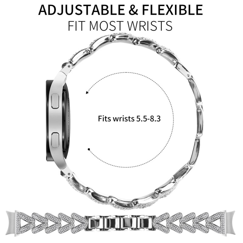 Ontdek ons elegante horlogebandje voor Samsung Galaxy Watch6. Het is gemaakt van een hoogwaardige zinklegering met strassteentjes en combineert duurzaamheid met een sprankelende afwerking.