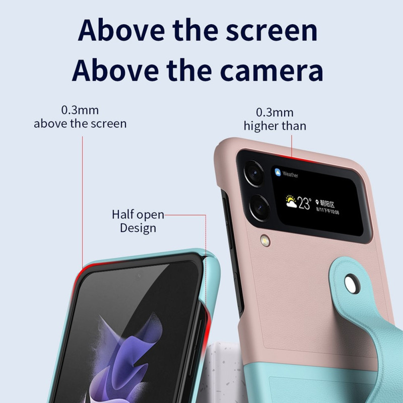 Geef uw Samsung Galaxy Z Flip 4 een superstevig hoesje door hem te beschermen met deze tweekleurige schelp met een riem om hem gemakkelijk mee te nemen.