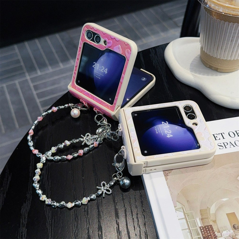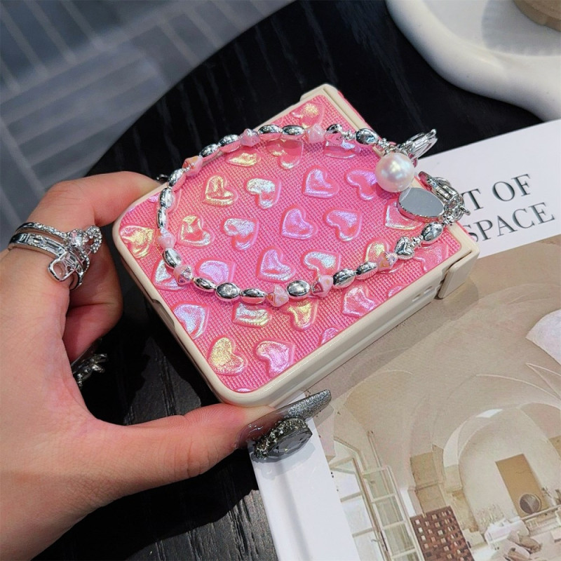 Ontdek onze stijlvolle hoes voor Samsung Galaxy Z Flip 7 FE / Z Flip 6. Met zijn unieke 3D-hartontwerp, kralen polsband en robuuste PU-leer