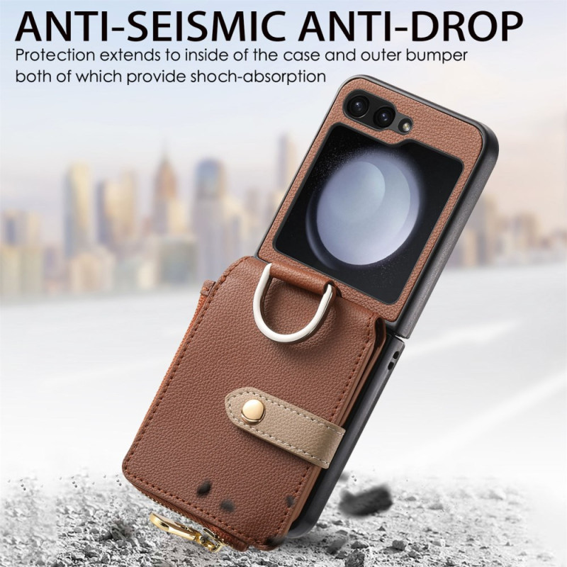 Ontdek onze innovatieve beschermhoes voor Samsung Galaxy Z Flip 7 FE / Z Flip 6. Met een praktisch vak met ritssluiting en een steunring combineert het functionaliteit en elegantie.