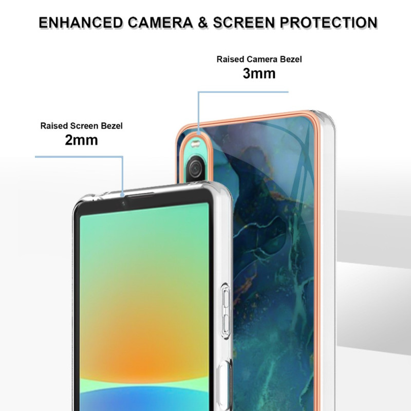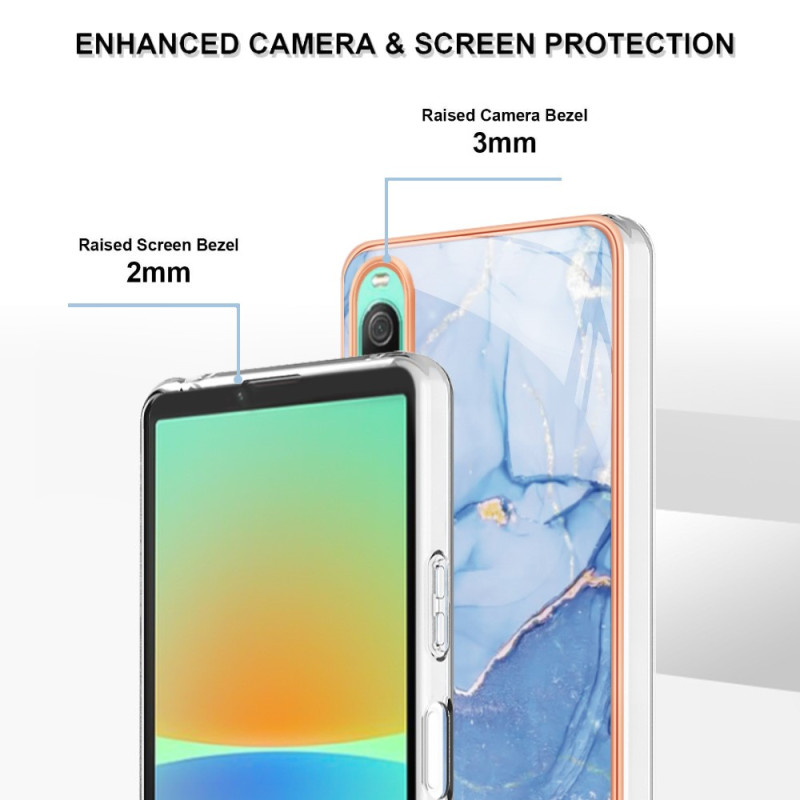 Deze Marble hoesje beschermt de achterkant en randen van de Sony Xperia 10 IV met finesse en grote efficiëntie.