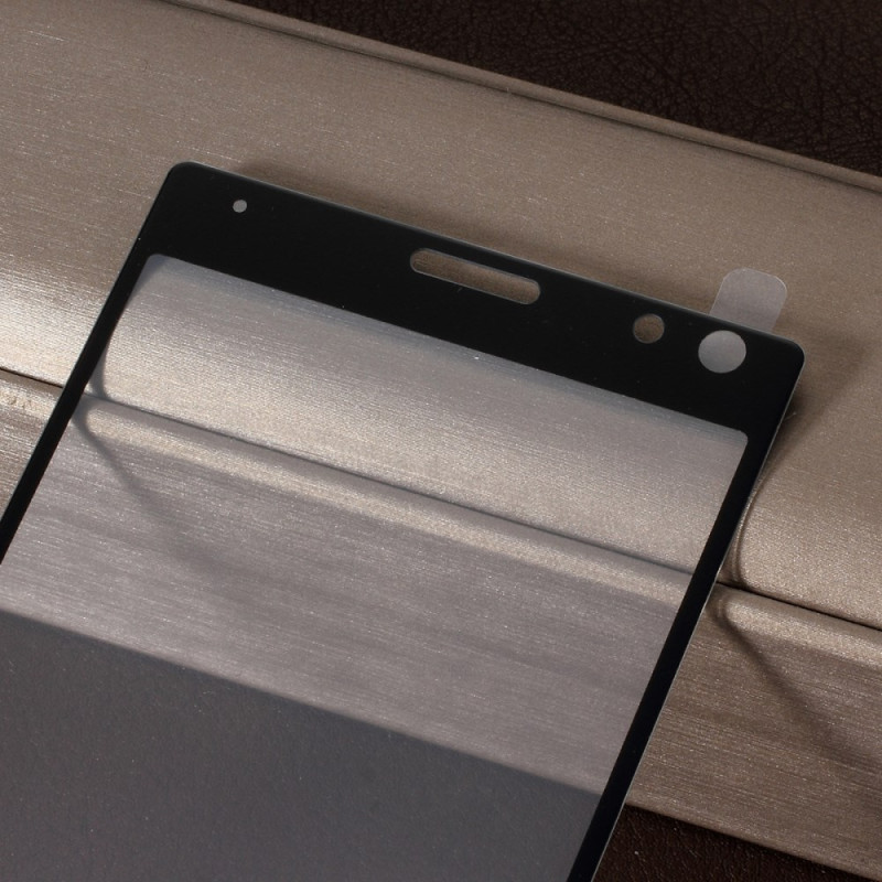 Protection d'écran en verre trempé de qualité supérieure pour Sony Xperia 10. Revêtement anti-traces, résistant aux rayures et ultra-transparent pour une clarté optimale. Installation sans bulles avec adhésion complète et bordure noire élégante.