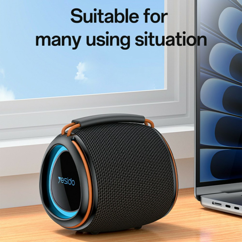 van YESIDO die 8 W geluidsvermogen combineert met spectaculaire RGB-verlichtingseffecten. Geniet van een ultrastabiele Bluetooth 5.3-verbinding, een batterijlevensduur van 4 uur en meerdere afspeelmodi (TF, FM, USB, TWS, AUX). Het compacte ontwerp en de 1200mAh batterij maken het de ideale metgezel voor je avondjes uit en onderweg.