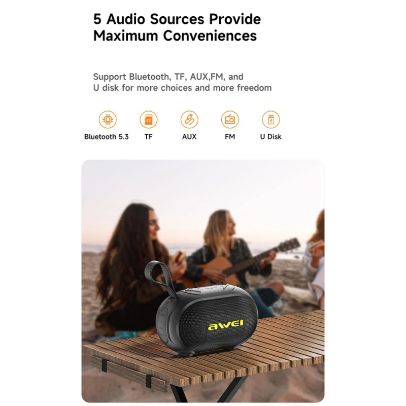 Ontdek een meeslepende 360° audio-ervaring met de AWEI KA1 luidspreker. Met Bluetooth 5.3-technologie, IPX5 waterdichte bescherming en dynamische RGB-verlichting levert hij een diepe bas en kristalheldere hoge tonen.