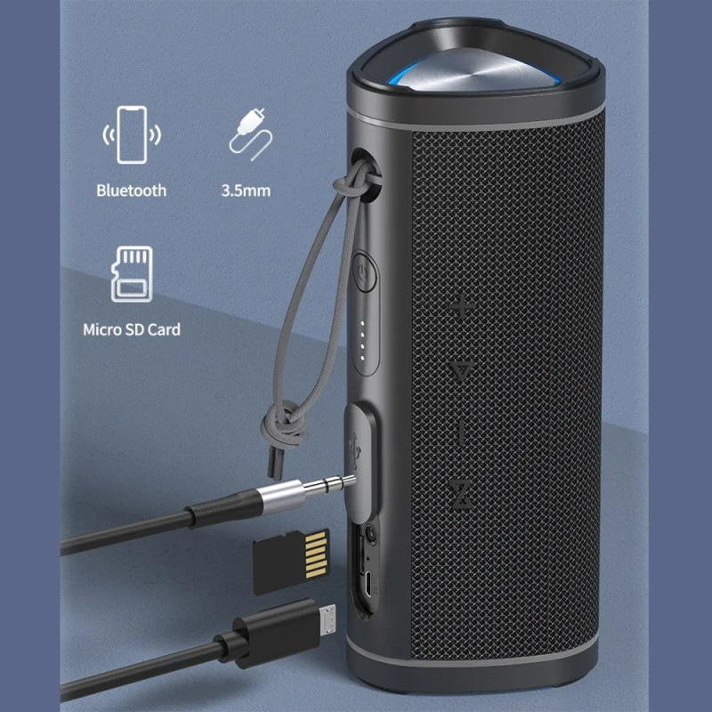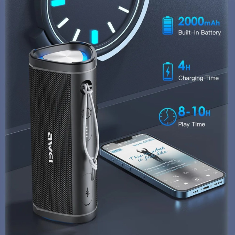 Geniet van krachtig stereogeluid met de AWEI Y331 Bluetooth-luidspreker. Waterdicht tot IPX6, een batterij die tot 10 uur meegaat, handsfree bellen met een ruisonderdrukkende HD-microfoon en ondersteuning voor verschillende afspeelmodi (Bluetooth, TF-kaart, AUX).