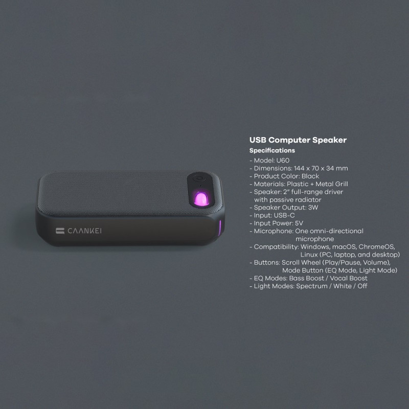 De U60-speaker biedt een plug-and-play professionele audio-oplossing met USB-C-connectiviteit voor Windows, macOS, ChromeOS en Linux. De 2-inch full-range driver, versterkt door twee passieve radiatoren, levert helder, meeslepend geluid, ideaal voor gesprekken, vergaderingen en presentaties. De omnidirectionele microfoon met DSP vermindert effectief omgevingsgeluid voor kristalheldere communicatie. Met twee EQ-modi kun je de geluidservaring aanpassen, terwijl je met een speciaal duimwiel eenvoudig het volume en het afspelen regelt.