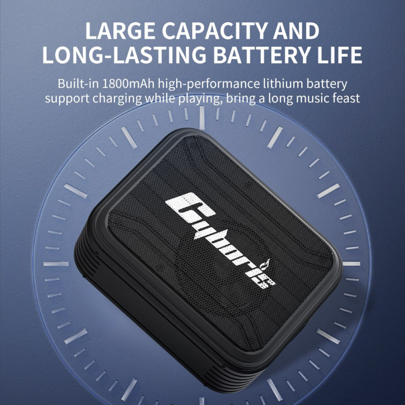 Deze compacte, waterdichte IPX7 CYBORIS speaker biedt veelzijdig gebruik, zowel buitenshuis als thuis. De 15 W speaker zorgt voor helder en krachtig luisteren, terwijl de Bluetooth 5.3 verbinding een stabiele transmissie garandeert, zelfs als je onderweg bent. Dankzij de 1800 mAh batterij gaat hij meer dan twaalf uur mee op matig volume. Hij ondersteunt verschillende audiobronnen, waaronder U-schijf, TF-kaart en AUX, en beschikt over geavanceerde functies zoals FM-radio, stemopname en loop-weergave. Dankzij het geïntegreerde koord is hij gemakkelijk mee te nemen, waardoor hij een praktische metgezel is voor op het strand, bij het zwembad of op reis.