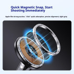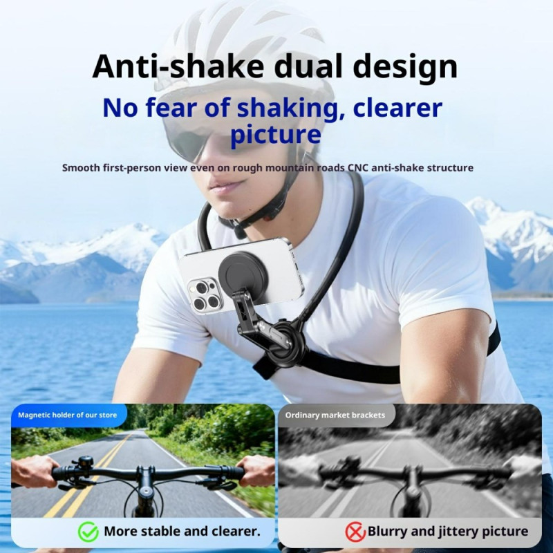 De ervaring van het maken van meeslepende content en het voeren van handsfree videogesprekken wordt verbeterd door deze innovatieve magnetische bevestiging. Deze houder is ontworpen voor POV en maakt gebruik van een magnetisch snelsluitmechanisme voor eenvoudige montage en demontage. Dankzij de meerdimensionale aanpassing (360° + 240°) kun je de ideale kijkhoek verkrijgen voor elk scenario (vloggen, browsen, bekijken). Het zachte, slipvaste siliconen ontwerp zorgt voor maximaal comfort, zelfs bij langdurig dragen. Het antischoksysteem garandeert de stabiliteit van het apparaat (meer dan 4,7 inch), zelfs bij matige fysieke activiteit.