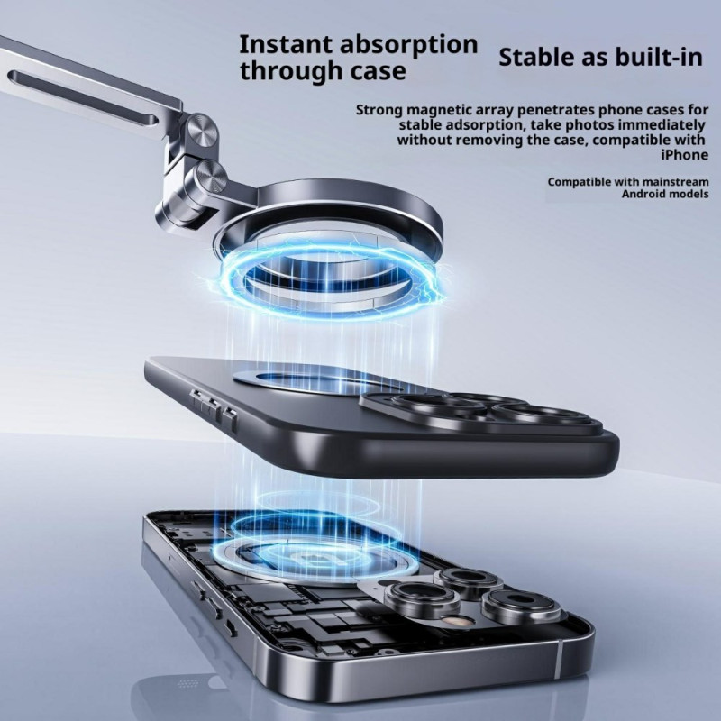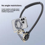 Het subjectieve gezichtsveld wordt nu vastgelegd met professionele stabiliteit, waardoor de handen van de contentmaker vrij zijn. Deze magnetische nekbandbevestiging is de ideale oplossing voor POV (Point of View) filmen, waardoor je smartphone een actiecamera wordt. De houder maakt gebruik van krachtige magneten, zodat het apparaat zelfs tijdens dynamische bewegingen stevig blijft zitten. Hij is gemaakt van aluminiumlegering en zachte siliconen en biedt optimaal comfort voor langdurig gebruik. De hoek is volledig instelbaar, zodat je het ideale perspectief kunt krijgen voor je vlogs en tutorials.