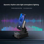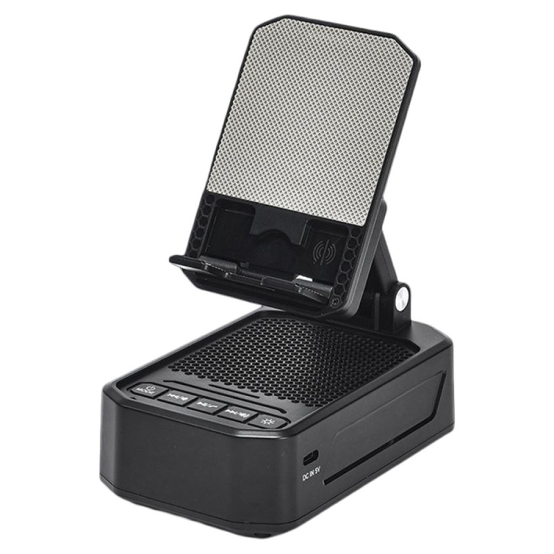 De convergentie van audio, kracht en visuele ergonomie is nu gecombineerd in één desktop accessoire. Deze speaker heeft 3-in-1 functionaliteit: speaker, telefoonhouder en externe batterij (2000mAh). Het 52 mm dubbele luidsprekersysteem, aangevuld met een basdiafragma, zorgt voor een meeslepende, high-fidelity geluidservaring (Bluetooth 5.3). Het apparaat detecteert en start draadloos afspelen wanneer de telefoon op de houder wordt geplaatst. Het opvouwbare ontwerp en de sfeerverlichting (7 kleuren) maken het ideaal voor het creëren van de perfecte sfeer op kantoor of thuis.