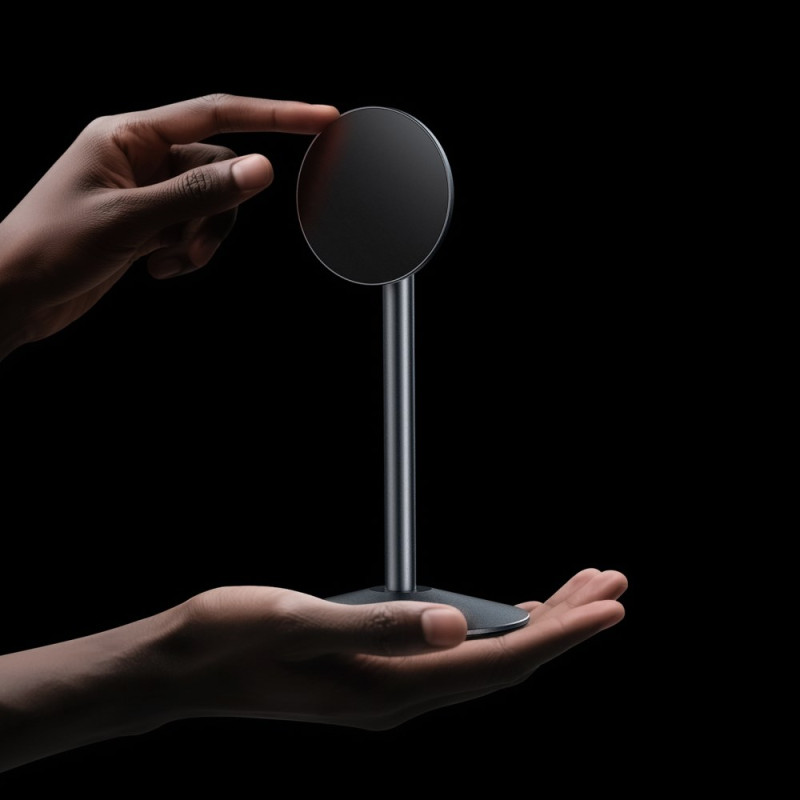 Een aluminiumlegering geeft deze houder de stabiliteit en minimalistische esthetiek die nodig is voor een moderne werkomgeving. Het apparaat weegt 600 gram en is ontworpen om telefoons van 4" tot 7" veilig op te bergen. Dankzij de krachtige magnetische bevestiging kan het apparaat direct worden bevestigd en verwijderd. De 360 graden draaibare kop biedt totale flexibiliteit om de kijkhoek aan te passen, ideaal voor live streaming of langdurig kijken. Geïntegreerde siliconen kussentjes beschermen de telefoon tegen krassen.