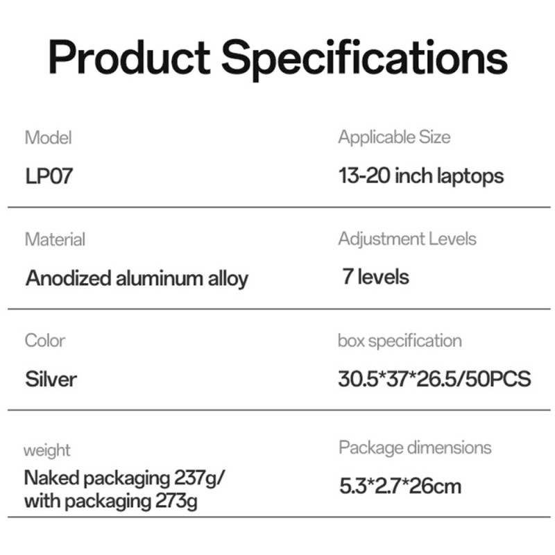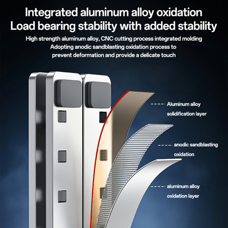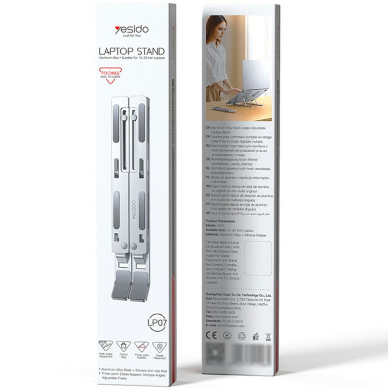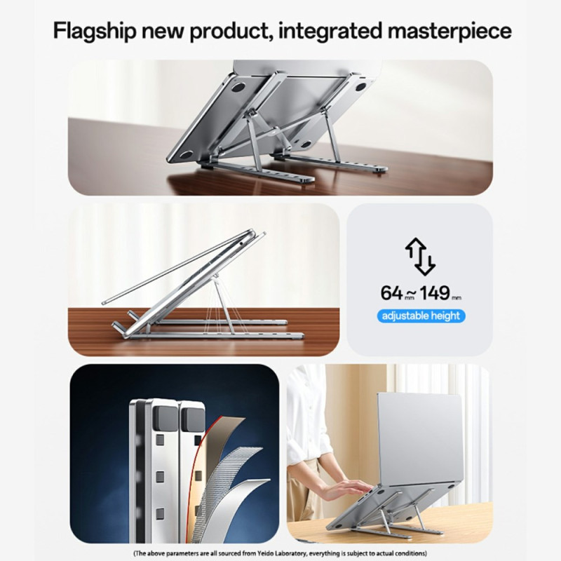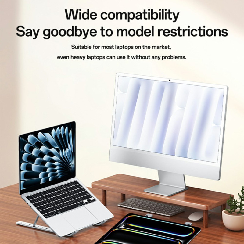 Deze standaard overtreft de marktnormen op het gebied van ergonomie en afwerking en biedt een duurzame oplossing voor welzijn op kantoor. Hij is gemaakt van een hoogwaardige aluminiumlegering met een geoxideerde afwerking en staat garant voor superieure duurzaamheid en metallic esthetiek. Met zeven hoogte-instellingen kan de gebruiker de ideale kijkhoek vinden, de houding corrigeren en vermoeide ogen verminderen. Geïntegreerde siliconen glijders zorgen voor slipvaste stabiliteit en beschermen het laptopoppervlak tegen krassen. Hij past op een groot aantal computers, van 13" tot 20".