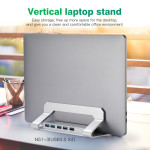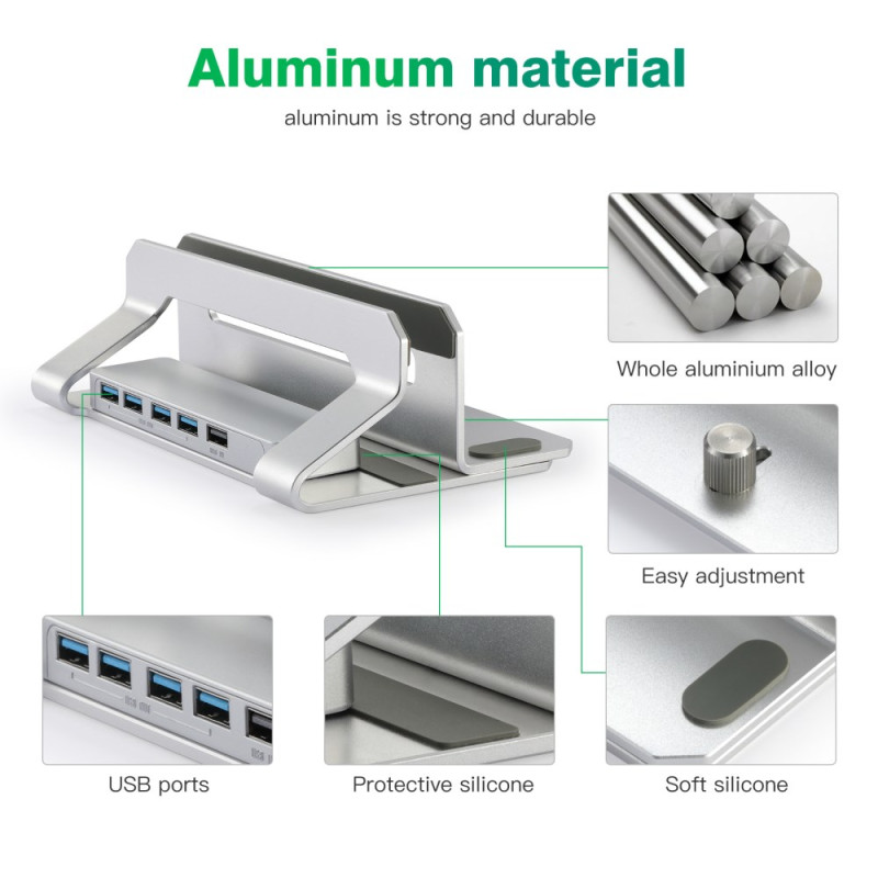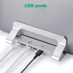 Het stroomlijnen van de werkruimte en het integreren van connectiviteit zijn de belangrijkste voordelen van deze verticale organiser. Deze standaard is gemaakt van een duurzame aluminiumlegering en is ontworpen om je telefoon (tot 17,3") rechtop te houden, waardoor kostbare bureauruimte vrijkomt. De geïntegreerde USB 3.0 hub met 4 poorten maakt het gemakkelijk om randapparatuur aan te sluiten en het kabelbeheer te optimaliseren. De breedte kan zonder gereedschap worden aangepast (7 mm tot 21 mm) via een gekartelde knop. Siliconen kussentjes beschermen het apparaat tegen krassen.
