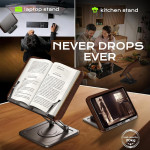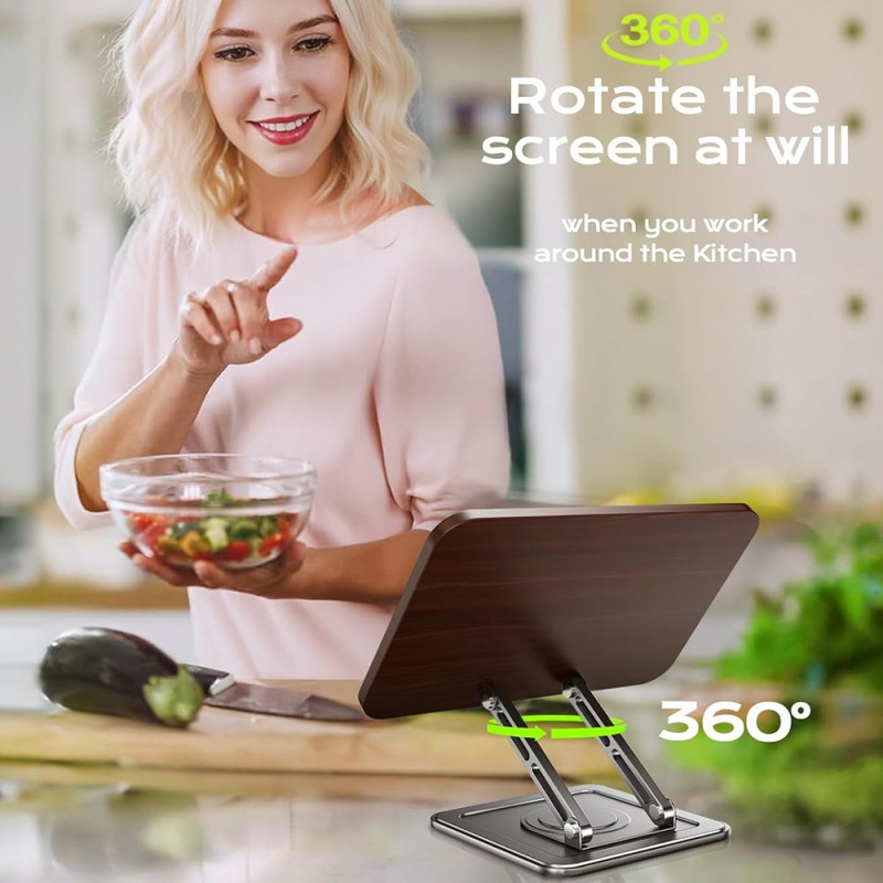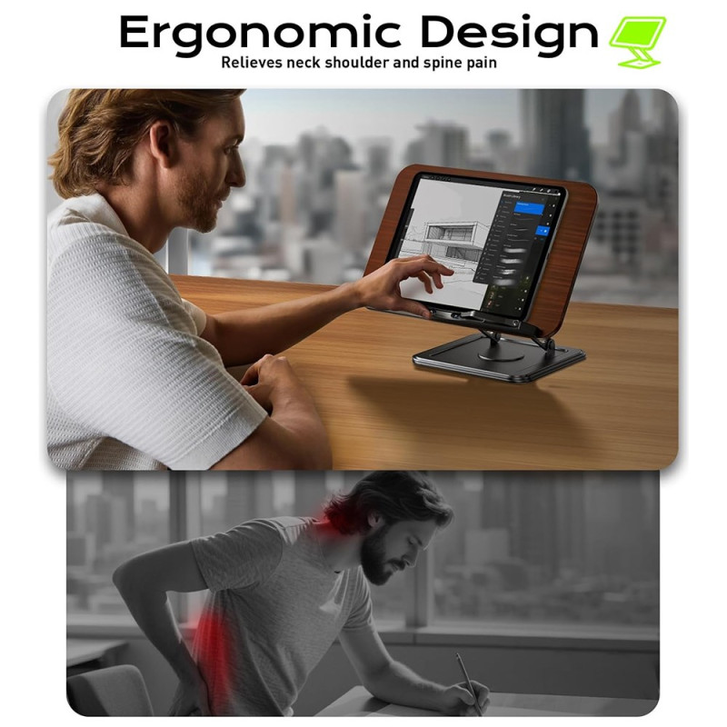 Van de natuurlijke elegantie van hout tot de robuustheid van koolstofstaal, deze standaard is de veelzijdige oplossing voor elke werkruimte. Hij is gemaakt van MDF en koolstofstaal en biedt betrouwbare stabiliteit om direct te werken of te schrijven. Zeven niveaus van hoogteverstelling stellen gebruikers in staat om de ideale kijkhoek te vinden, waardoor de houding wordt gecorrigeerd en vermoeide ogen worden verminderd. De 360 graden draaibaarheid biedt ultieme flexibiliteit, waardoor de kijkhoek kan worden aangepast voor laptops, tablets of boeken.