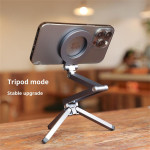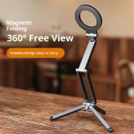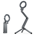Lichtgewicht en compact, deze magnetische standaard ontvouwt zich en verandert elke ruimte in een studio voor streaming of videoconferenties. Hij is gemaakt van een aluminiumlegering en biedt een duurzame en stabiele structuur voor smartphones van 4 tot 7 inch. Dankzij het krachtige magneetsysteem kan het apparaat snel worden bevestigd en verwijderd. De hoogte van de standaard is volledig verstelbaar en zorgt voor een ergonomische positie en optimale kijkhoek voor directe opnamen. Dankzij het opvouwbare ontwerp past hij gemakkelijk in een reis- of computertas.