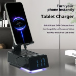 De deskundige combinatie van verlichting, tijdbeheer en audio-entertainment definieert dit multifunctionele apparaat. Dit 4-in-1 station bevat een Bluetooth 5.1 speaker voor een rijk 360° geluid en een digitale klok met twee alarmen. De standaard is 180 graden verstelbaar, waardoor ergonomisch kijken in staande en liggende standen mogelijk is. De omgevingsverlichting biedt zeven dynamische modi (verloop, ademhaling, vaste kleuren) en creëert een ontspannen sfeer. De geïntegreerde 2000mAh batterij biedt tot 4 uur ononderbroken draadloos afspelen.