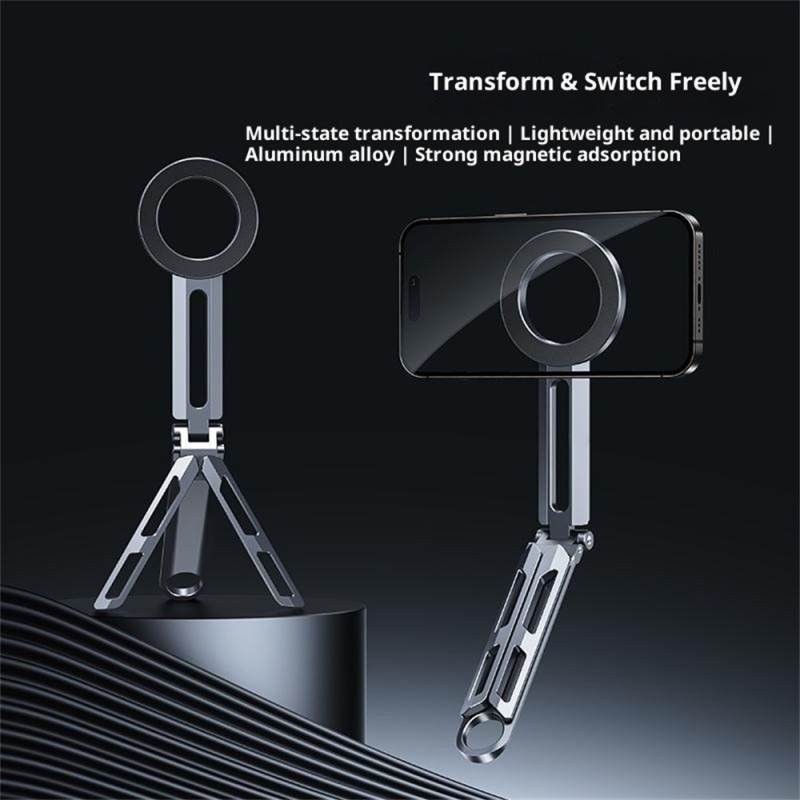 Deze standaard is ontworpen voor professionals die veel onderweg zijn en maakt dankzij de MagSafe-technologie een einde aan de wrijving die gepaard gaat met bedrade montage. Hij is gemaakt van een duurzame aluminiumlegering, heeft een stabiele structuur en weegt slechts 100 gram. Dankzij het volledig opvouwbare ontwerp (15x6,5x2,5cm) kun je hem gemakkelijk opbergen in een aktetas of tas. Het geïntegreerde MagSafe systeem bevestigt je telefoon direct en veilig magnetisch. De houder past smartphones van 4 tot 7 inch en biedt een stijlvolle handsfree oplossing voor op kantoor of op reis.