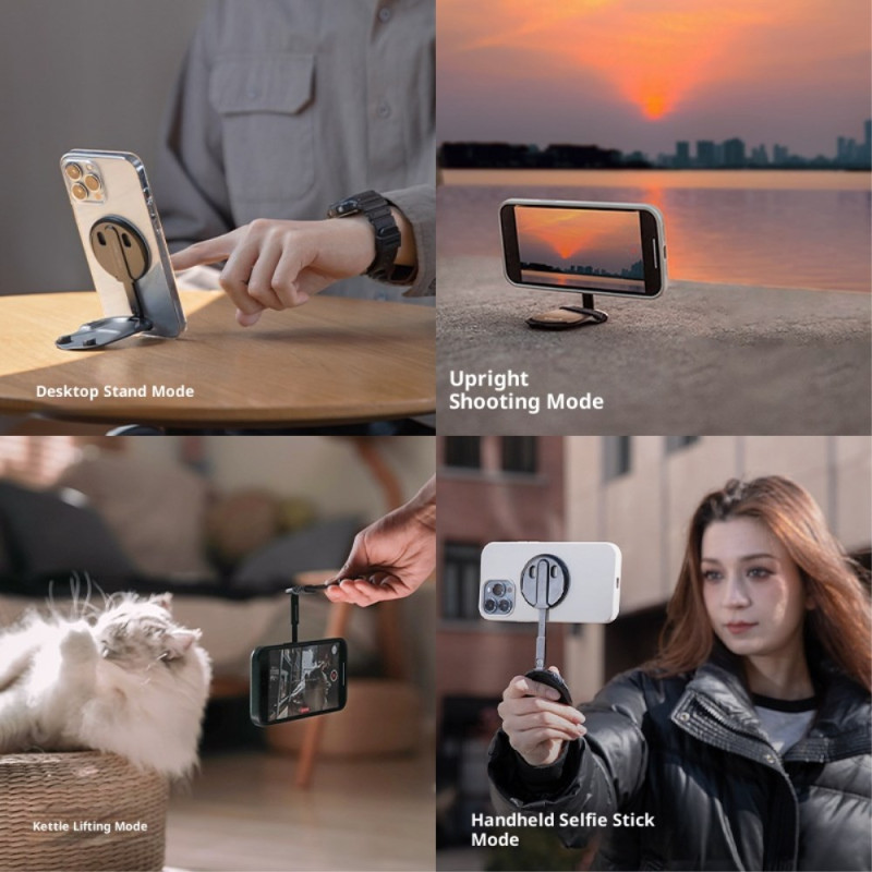 De flexibiliteit van een accessoire dat direct kan overschakelen van selfiemodus naar desktopstandaard is het kenmerk van deze PGYTECH MagFlex Magnetische Standaard. De hoogwaardige legering zorgt voor een lichtgewicht, duurzame en stabiele structuur. Het krachtige magnetische systeem zorgt voor een veilige, moeiteloze bevestiging aan MagSafe apparaten. Het accessoire is ontworpen voor snelle multifunctionele conversie (handgreep, tafelstandaard, lage hoek). De ergonomische handgreep vermindert vermoeidheid tijdens langdurig gebruik. Deze standaard is een essentieel hulpmiddel voor contentmakers en professionals op het gebied van videoconferenties.