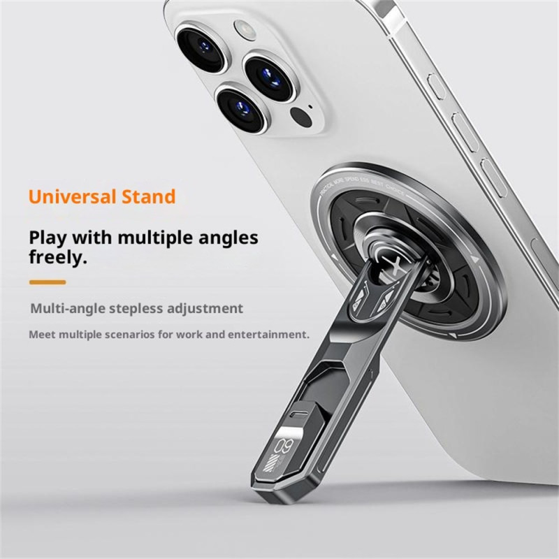 De discrete integratie van een veelzijdige standaard in het ontwerp van hout en aluminium maximaliseert de functionaliteit zonder het apparaat te belasten. De standaard combineert de warme esthetiek van hout met de duurzaamheid van aluminiumlegering. Het vederlichte gewicht van 46 gram en het opvouwbare ontwerp maken hem ideaal voor transport. Dankzij de dubbelzijdige magneet zit je telefoon (4-7 inch) stevig vast en past hij op verschillende ijzerhoudende oppervlakken (keuken, kantoor). De 360-graden rotatie maakt precieze aanpassing mogelijk voor alle kijkbehoeften.