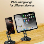 Deze steun, die nodig is voor de stabiliteit en precisie van de hoek, combineert de robuustheid van ijzer met de elegantie van aluminium. De geoxideerde ijzeren basis zorgt voor een stevige basis, terwijl de arm van aluminiumlegering een soepele beweging mogelijk maakt. Met drie draaipunten en 360 graden rotatie biedt hij maximale flexibiliteit voor een optimale kijkhoek. Siliconen kussentjes beschermen het apparaat (4,7 tot 7,2 inch) tegen krassen. Dit apparaat is de ideale oplossing voor op kantoor of thuis en biedt een betrouwbaar platform voor videoconferenties of het bekijken van inhoud.
