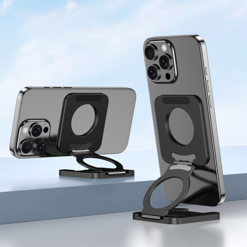 De dubbelzijdige magnetische telefoonhouder biedt een soepele, elegante gebruikerservaring dankzij de aeronautische aluminiumlegering en het antislip silicone ontwerp. Dankzij het dubbelzijdige magnetische systeem kan de telefoon 360° worden gedraaid en in meerdere hoeken worden geplaatst, ideaal voor portret- of landschapsmodus. Hij is ultradun (ingeklapt slechts 10 mm) en past gemakkelijk in een zak of tas. Stabiel, lichtgewicht en compatibel met alle MagSafe-modellen, is hij net zo geschikt voor smartphones en tablets voor gebruik op kantoor, streaming, videogesprekken of gebruik in de auto.