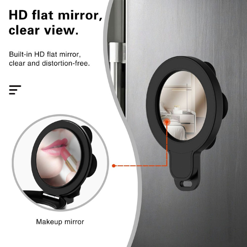 De MagSafe-compatibele zuignaphouder met geïntegreerde spiegel combineert functionaliteit en elegantie voor veelzijdig dagelijks gebruik. Dankzij het krachtige magneetsysteem houdt hij je smartphone stevig op zijn plaats en kan hij tegelijkertijd vrij en stabiel worden gericht. Gemaakt van hoogwaardige materialen - PC, siliconen, spiegel en magneten - is hij robuust en duurzaam. De ingebouwde spiegelfunctie maakt hem ideaal voor snelle touch-ups of last-minute controles. Compact en multifunctioneel, het is zowel een stabiele telefoonhouder als een stijlvolle draagbare spiegel.
