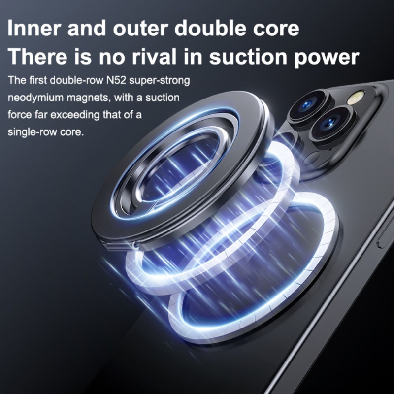 Ontdek de ultieme MagSafe-compatibele magnetische telefoonhouder. Soepele 360° rotatie, 2-in-1 ring- en houderfunctie, multi-hoekinstelling voor optimaal gebruik in portret- of landschapsmodus. Compact, opvouwbaar ontwerp.