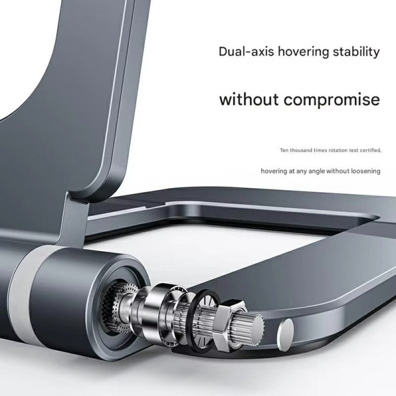 Deze verstelbare bureaustandaard combineert elegantie, stabiliteit en functionaliteit in een compact, opvouwbaar formaat. Hij is gemaakt van een duurzame aluminiumlegering met anti-slip siliconen voetjes en houdt je smartphone of tablet stevig vast zonder krassen. Dankzij de verstelbare structuur kun je de hoek en hoogte aanpassen aan je behoeften, voor optimaal comfort tijdens het werken, videobellen of films kijken. Hij is licht en gemakkelijk mee te nemen, in een handomdraai op te vouwen en past gemakkelijk in een tas of zak, waardoor hij ideaal is voor op kantoor en onderweg.