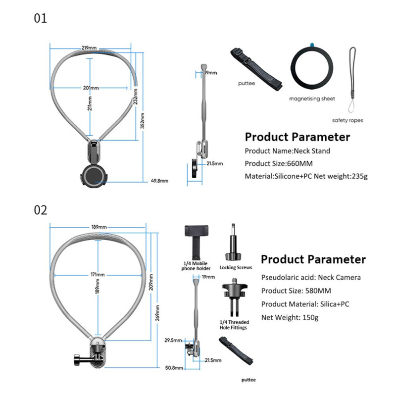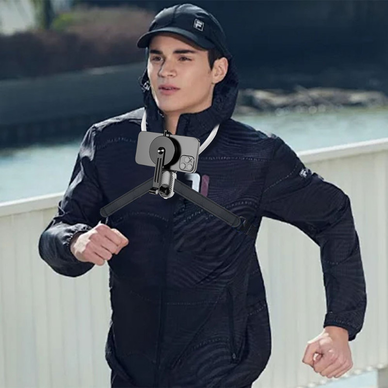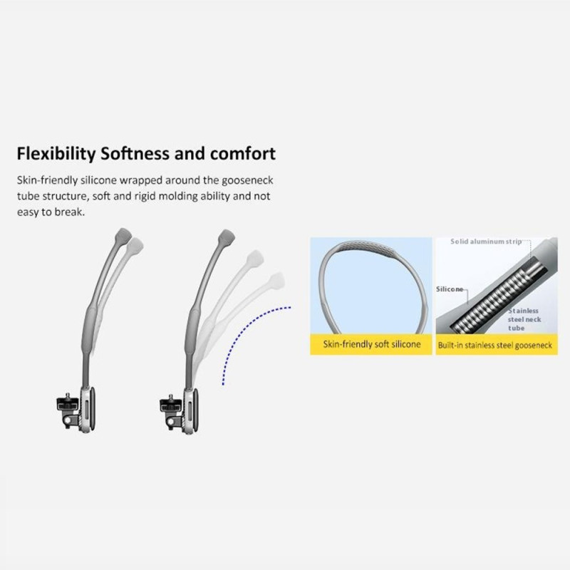 De magnetische telefoonhouder met flexibele nek is het ideale hulpmiddel voor contentmakers, vloggers of streamers. Het ergonomische ontwerp omhelst de achterkant van de nek voor een comfortabele, stabiele pasvorm, zelfs bij langdurig gebruik. Het krachtige magneetsysteem zorgt voor onmiddellijke bevestiging en soepele 360° rotatie, ideaal om vanuit alle hoeken te filmen. Hij is gemaakt van zacht siliconen en roestvrij staal en biedt duurzaamheid en flexibiliteit zonder risico op breuk. Hij kan om de nek worden gedragen of op een tafel worden gelegd, waardoor hij ideaal is voor elk opname- of kijkscenario.