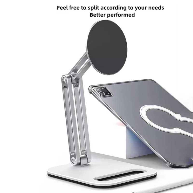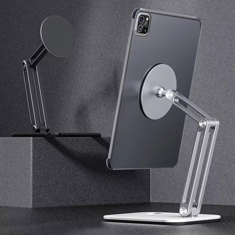 De Boneruy C47 magnetische tabletstandaard biedt de perfecte combinatie van stevigheid, elegantie en gebruiksgemak. Hij is gemaakt van een hoogwaardige aluminiumlegering en biedt een opmerkelijke stabiliteit voor smartphones en tablets van 5 tot 12,9 inch. Dankzij de twee scharnierende armen kun je de hoogte en kijkhoek eenvoudig aanpassen om in een ergonomische houding te werken, tekenen of video's te bekijken. Het precieze, krachtige magneetsysteem zorgt voor een veilige, trillingsvrije grip. Hij is opvouwbaar en compact, dus gemakkelijk mee te nemen en discreet op te bergen als je hem niet gebruikt.
