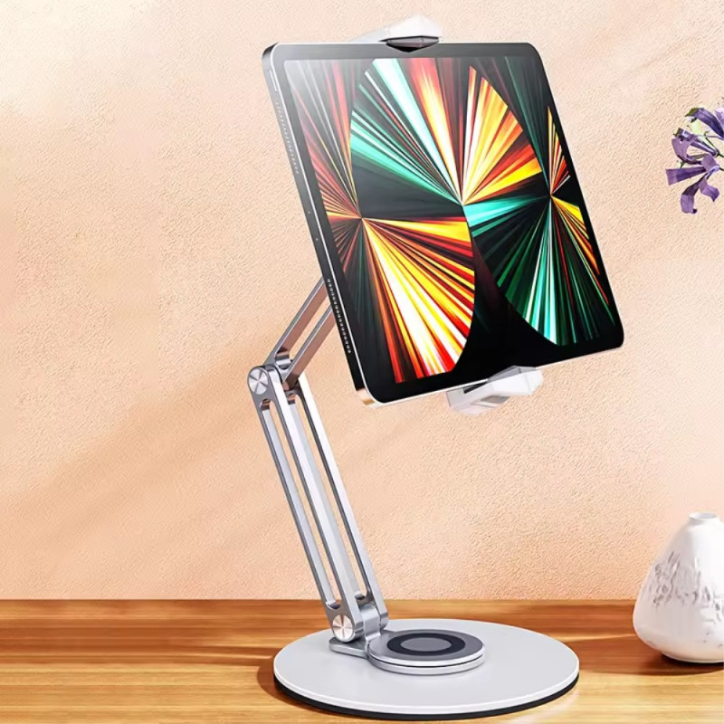 De magnetische tabletstandaard van Boneruy biedt een opmerkelijke stabiliteit dankzij de hoogwaardige structuur van aluminiumlegering. Met de twee scharnierende armen kun je de hoogte en hoek aanpassen voor optimaal kijkcomfort, of je nu werkt, tekent of een video bekijkt. De geïntegreerde magneten zijn nauwkeurig en krachtig en zorgen voor een stevige grip zonder trillingen. Compatibel met apparaten van 5" tot 12,9" en gemakkelijk in te klappen voor compact opbergen of handig meenemen. Elegant, robuust en functioneel, perfect voor elke omgeving.