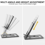 De AHASTYLE bureaustandaard biedt een elegante, ergonomische oplossing voor het dagelijks vasthouden van je apparaten. Dankzij het snelle openingssysteem en de meerdere instelhoeken is het eenvoudig om de ideale kijkpositie in te nemen om te werken, studeren of video's te bekijken. Hij is gemaakt van een robuuste aluminiumlegering en biedt uitstekende stabiliteit terwijl hij toch licht en duurzaam blijft. Dankzij de opvouwbare structuur is hij gemakkelijk mee te nemen en op te bergen. Hij is compatibel met laptops, tablets en smartphones, brengt je schermen op ooghoogte en helpt nekvermoeidheid te verminderen.