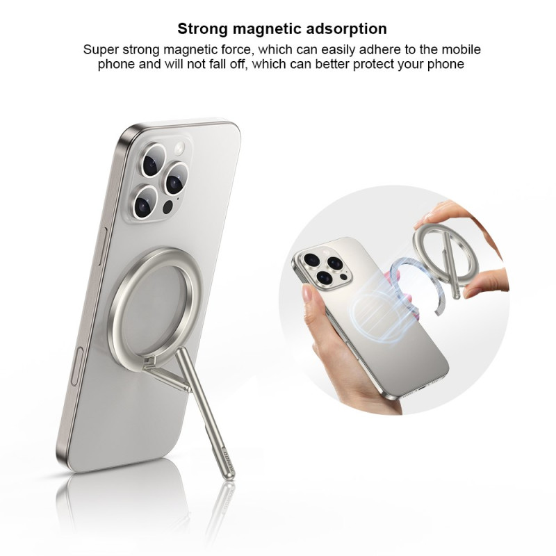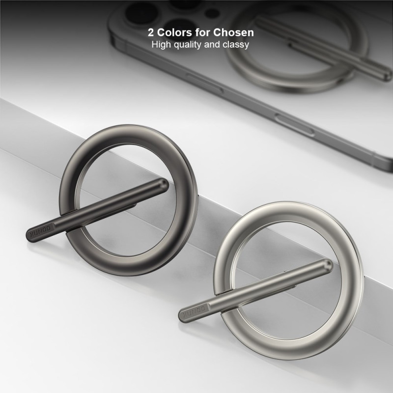 Deze XUNDD roterende magnetische houder met ring is een stijlvol en praktisch accessoire om uw telefoon elke dag veilig te stellen. De krachtige magnetische ring zorgt voor een stabiele grip en ligt prettig in de hand bij het bellen, sms'en of browsen. Dankzij de 360° rotatie kan de telefoon gemakkelijk worden aangepast tussen portret- en landschapsmodus voor een optimale weergave. Het slanke ontwerp van aluminiumlegering garandeert lichtheid, duurzaamheid en een moderne stijl. Hij is opvouwbaar en compact en past gemakkelijk in een zak of tas, waardoor hij ideaal is voor op reis.