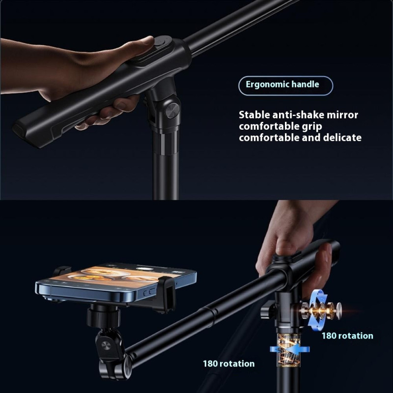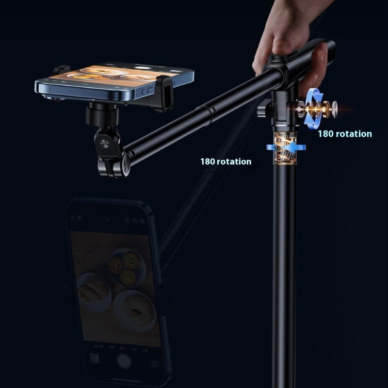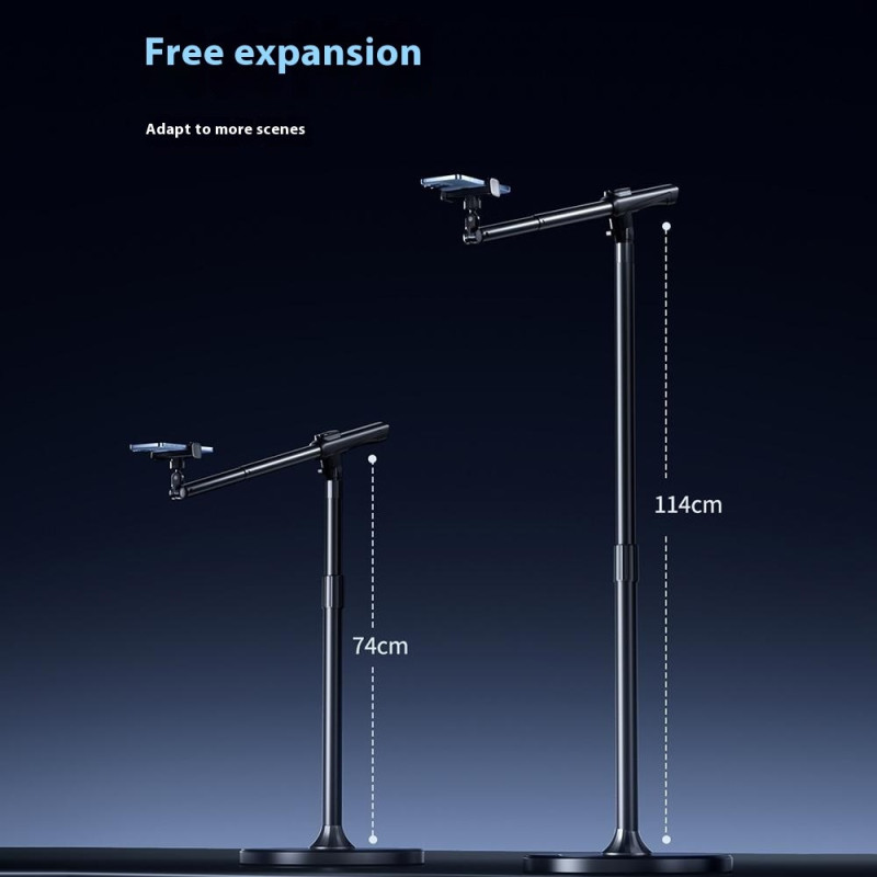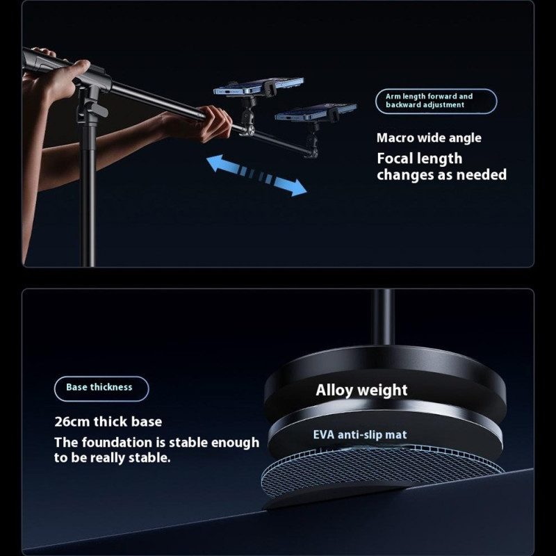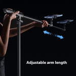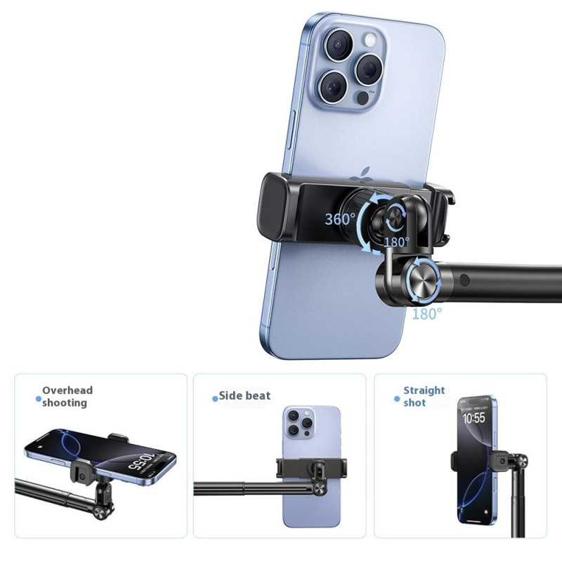 Professionele verstelbare smartphonestandaard met 360° panoramische arm, stabiele basis van 26 cm en 180° verticale/horizontale verstelling. Perfect voor live streaming, het maken van content en video. Compatibel met smartphones tot 6,7". Inclusief interface voor accessoires.