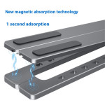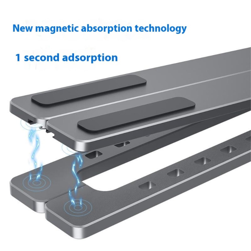 De X3 opvouwbare magnetische standaard voor laptops en tablets is ontworpen voor mobiliteit, stabiliteit en gebruiksgemak. Dankzij het ingenieuze magneetsysteem is hij direct uitklapbaar en in enkele seconden opklapbaar, waardoor hij ideaal is voor op reis. Hij is gemaakt van hoogwaardig aluminium, is extreem stevig en toch licht met een gewicht van slechts 200 gram. De antislip siliconen voetjes beschermen je apparaat en zorgen voor slipvrij gebruik. Hij is compatibel met apparaten tot 17" en brengt je scherm op ergonomische hoogte, zodat je nek en schouders minder worden belast.